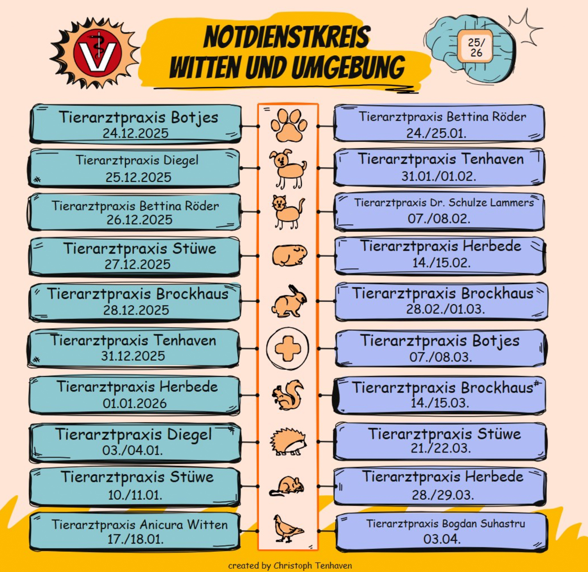 Mittwoch, 24.12.2025: Tierarztpraxis Botjes in Witten