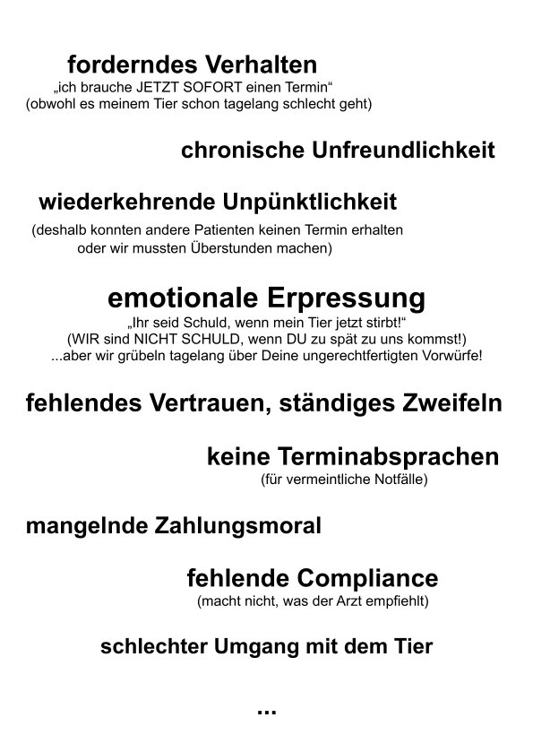 WIR entscheiden, wann und welcher Grund dazu geführt hat, dass WIR es für richtig halten, nicht mehr mit einem Kunden oder einer Kundin zusammenzuarbeiten – auch wenn uns das in fast allen Fällen sehr Leid um das betroffene Tier tut!